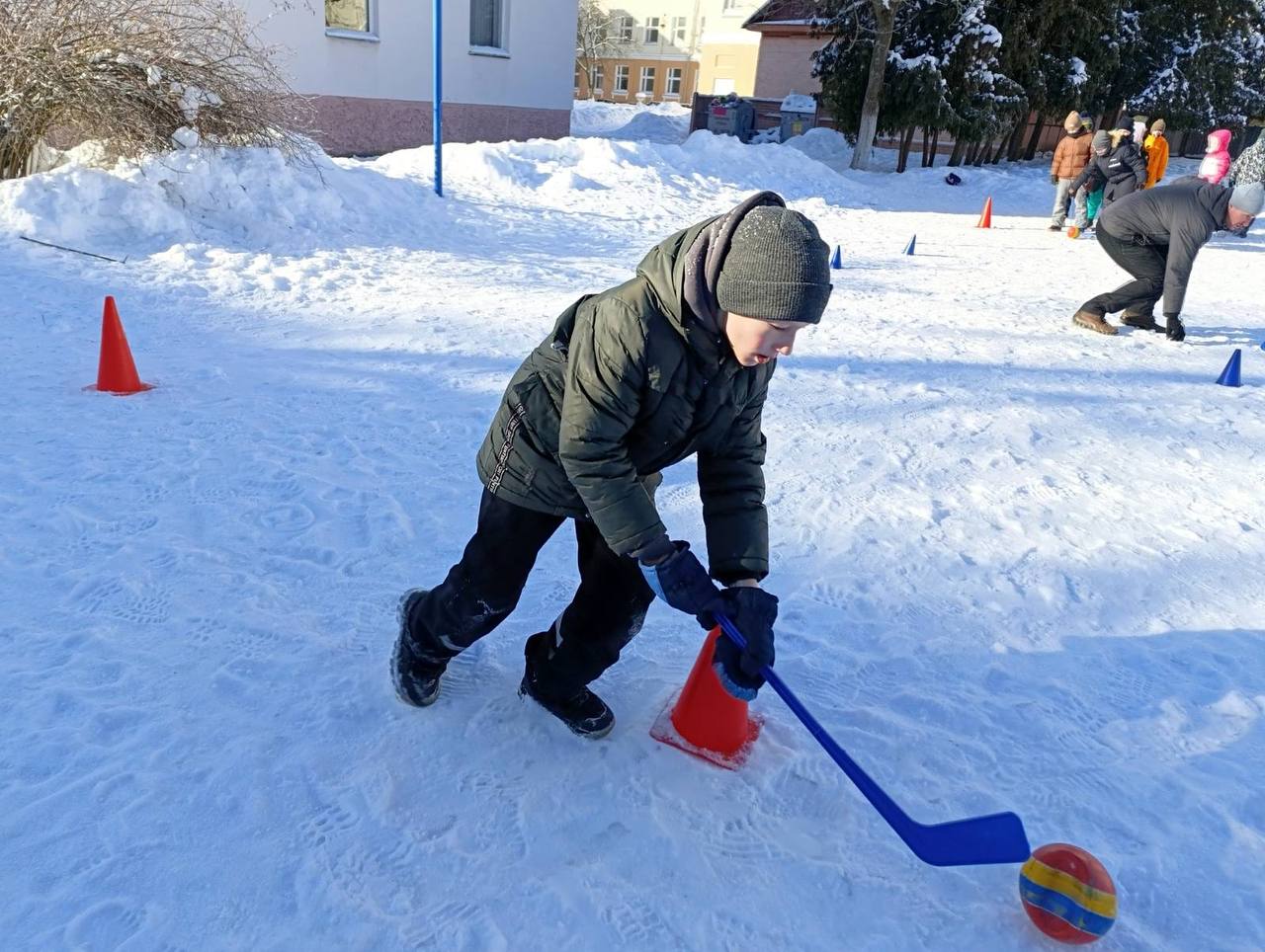 В этот прекрасный морозный субботний день в гимназии прошли «Зимние забавы». Это и спортивные эстафеты для активных, и хоккей с мячом для спортивных, и сказочно-познавательное мероприятие в библиотеке для самых маленьких гимназистов.